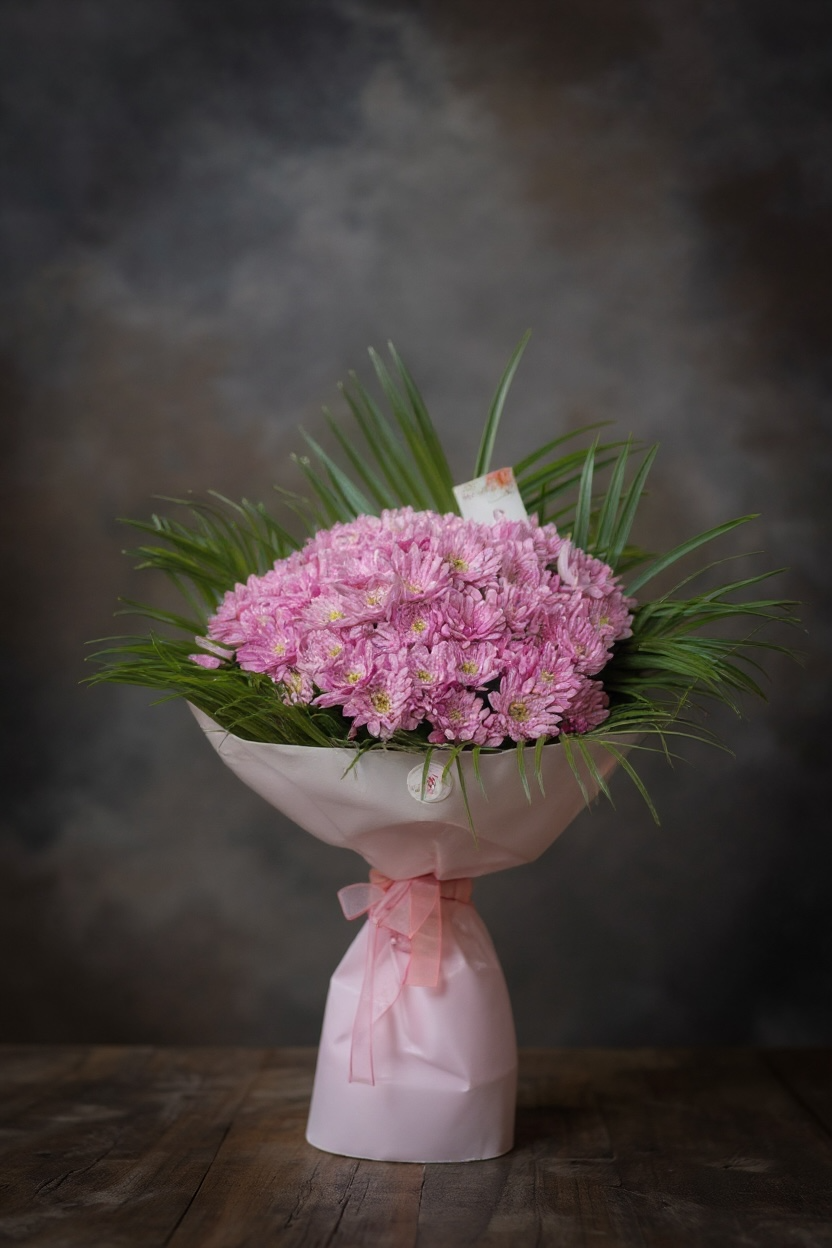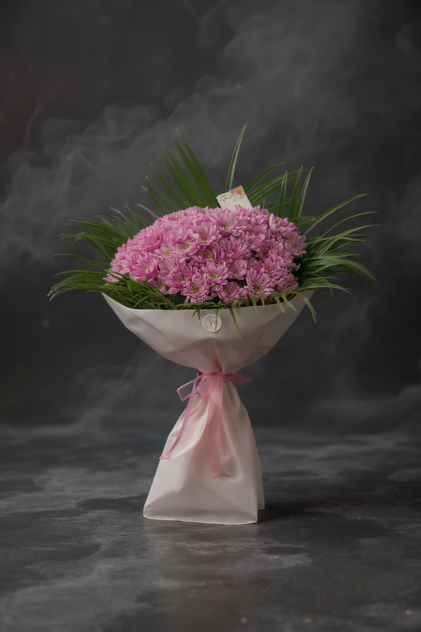 Doğallığın en sade haliyle buluştuğu Soft Pink Krizantem Buketi, pembe tonlarının huzur verici zarafetini yansıtan özel bir tasarımdır. Her biri taze ve dolgun krizantem çiçeklerinden hazırlanmış bu buket, yeşil yapraklarla çevrelenerek pastel pembe ambalajla tamamlanmıştır.