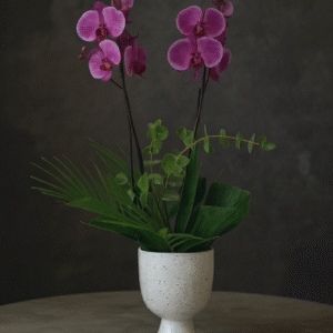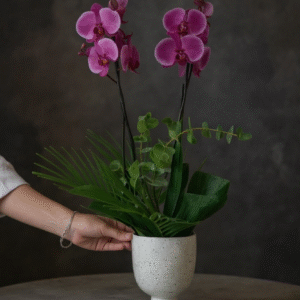 Rosevia, pembe papatya formundaki krizantemlerin neşeli dokusunu, cipso çiçeklerinin romantik detaylarıyla bir araya getirerek ferah ve göz alıcı bir görünüm sunar. Palmiye yapraklarının modern ve iddialı dokunuşu ise buketi sıradanlıktan çıkarıp daha özel ve stil sahibi bir tasarıma dönüştürür. Soft pembe ambalajı ile hem şık hem de zarif bir hediye alternatifi olan Rosevia, bulunduğu her ortamda sıcak bir tebessüm bırakır.
