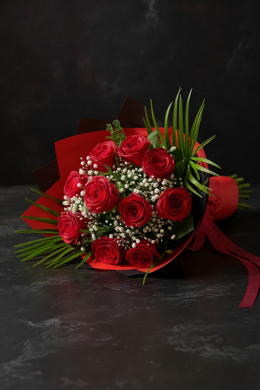🌹 Çiçek Türleri: Premium kırmızı gül, cipso